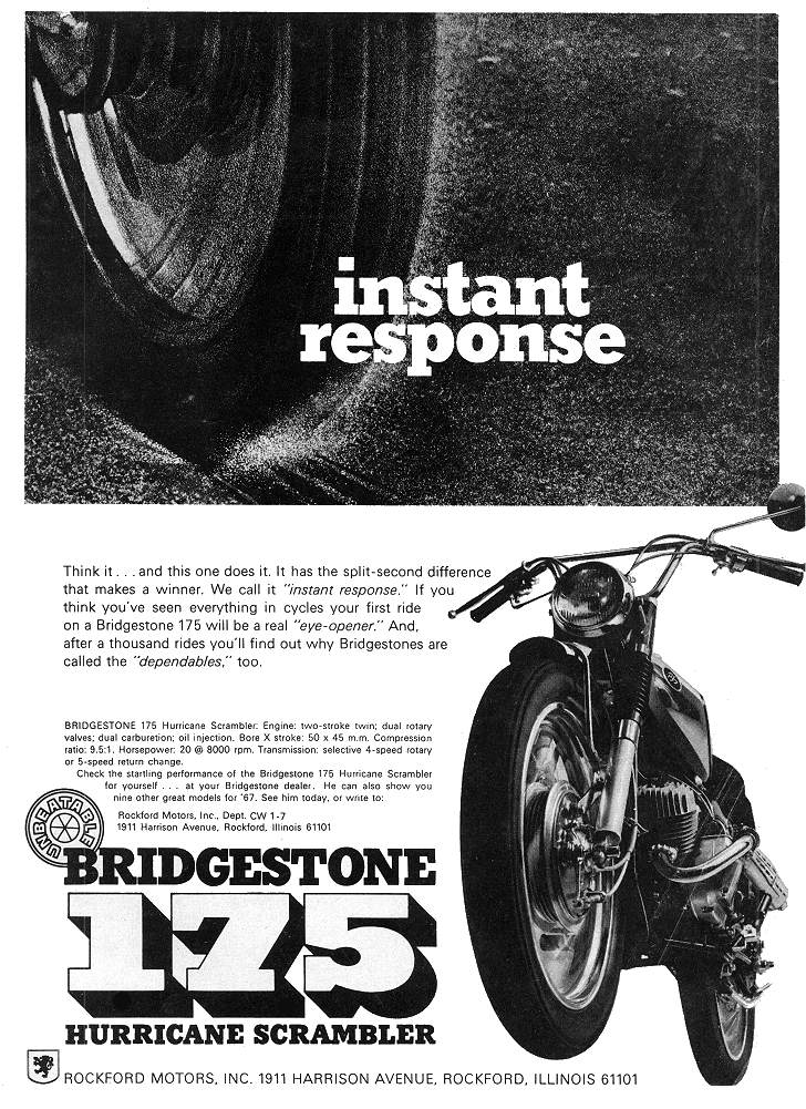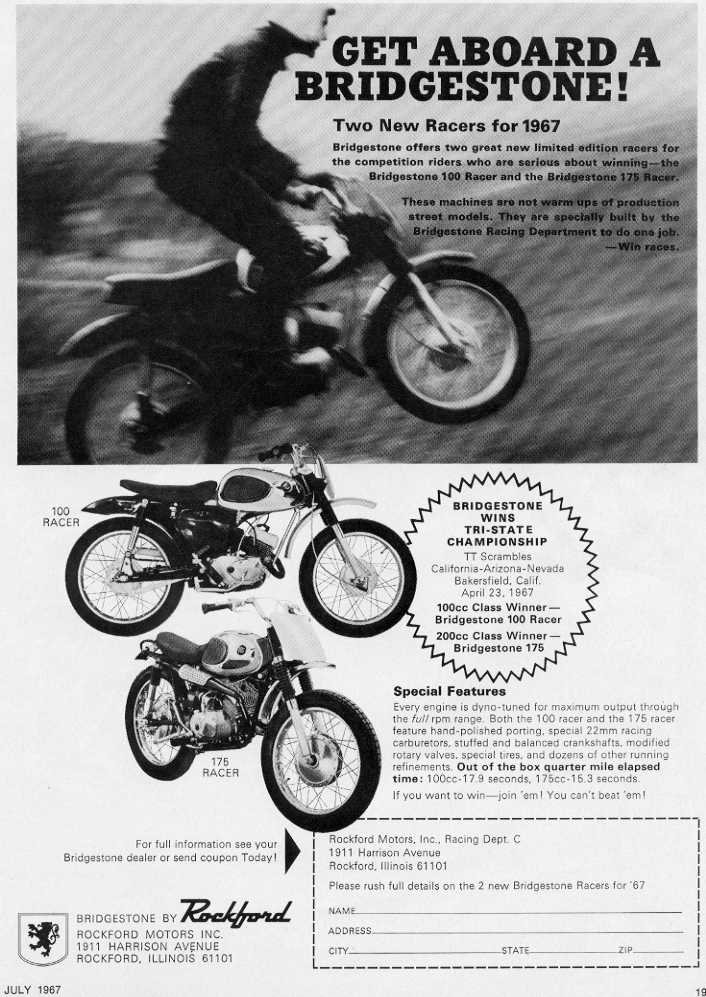 aboard a Bridgestone!, 100 & 175 Racer, July 1967 Cycle