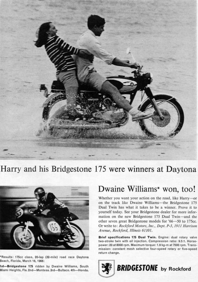 and his Bridgestone 175 were Winners at Daytona..., 1966 advertisement